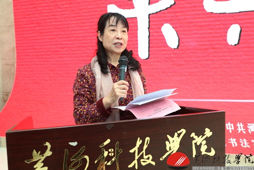 杨杰在答谢词中对领导们的关怀表示感谢。她特别指出,胡大白老师是我非常敬重的恩师。虽然大学只有四年,但四十年来胡老师一直关心着每一个同学的成长进步。我们郑大中文系79级的同学也都亲眼见证了她30元起家,创造了黄河科技学院这个中原大地上的传奇。35年来,学院伴随着中国改革开放的脚步不断壮大,走向辉煌。始终领跑中国民办高等教育的发展,成为新中国教育史上一颗璀璨的明珠。胡大白老师和黄河科技学院创造的三种精神,即先天下之忧而忧的勇于担当精神,敢为天下先的开拓创新精神,百折不挠、勇往无前的自强不息精神,更是一种宝贵的财富。它是我们追梦路上不可或缺的精神食粮,也是多年来我的精神标杆和学习榜样。习近平总书记强调,人民是文艺创作的源头活水。要从人民的伟大实践和丰富多彩的生活中汲取营养。黄科院就是文艺工作者的富矿。