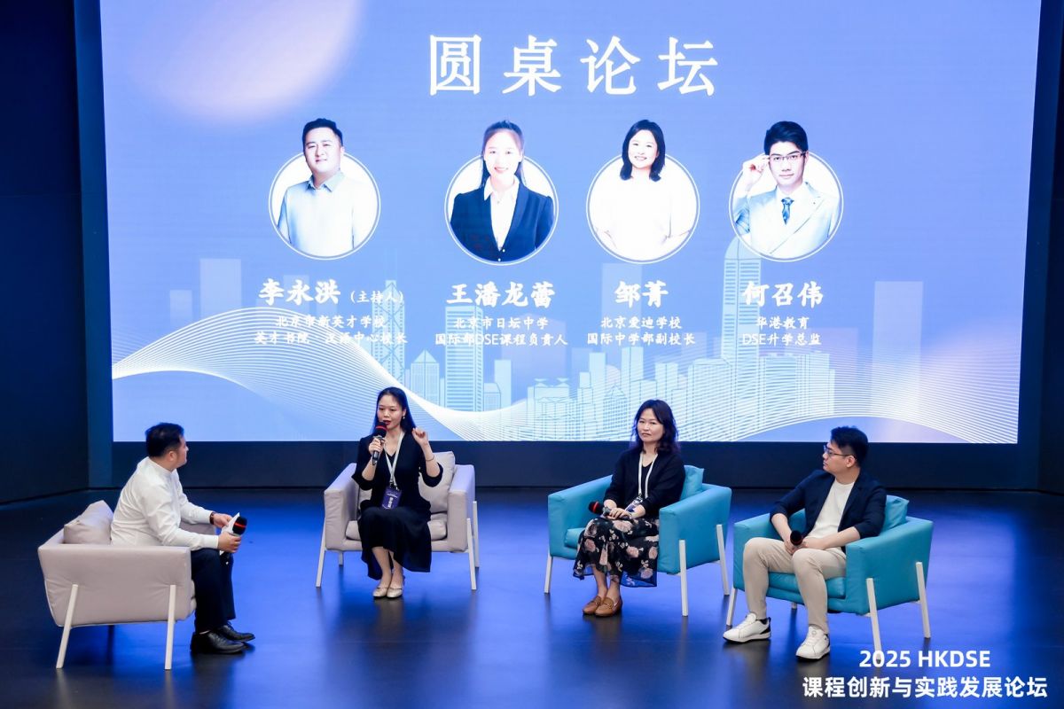 在以“HKDSE课程的在地化重构与未来生态”为主题的论坛环节,北京市日坛中学国际部DSE课程负责人王潘龙蕾,北京爱迪学校国际中学部副校长邹菁,华港教育DSE升学总监何召伟,在新英才学校英才书院·汉语中心校长李永洪的主持下,围绕目前DSE课程开设面临的机遇和挑战,以及经验分享和未来发展进行了探讨。